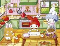 秋の味覚を使って、ママとお料理をするマイメロディ。